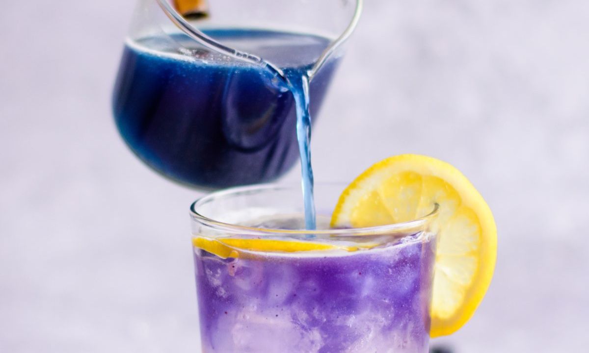 - Mix with a fruit infused drink for a lovely blue shade. Then add lemon juice to change color of your drinks from blue to purple.